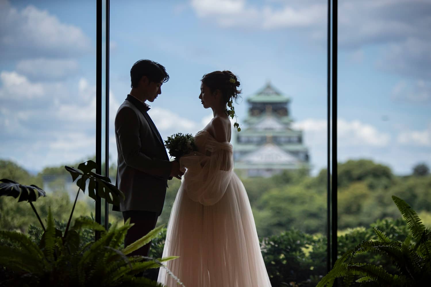 天守閣が真正面に見える厳かなチャペルや、